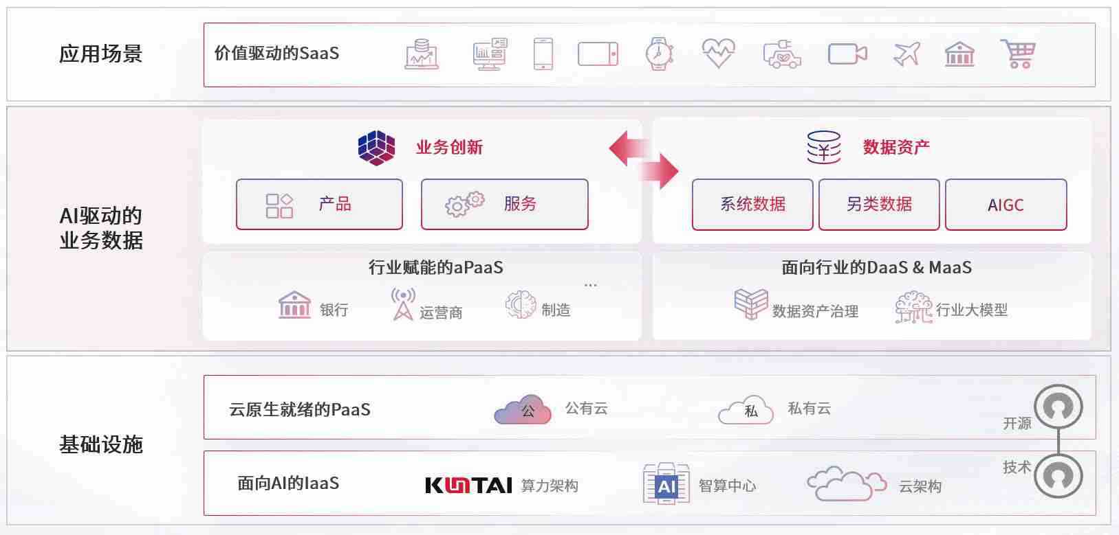 数字时代,,围绕企业数字化转型的关键要素,,,新盛娱乐数码开创性的提出数云融合战略和技术体系框架,,着力在云原生、、、、数字原生、、、、AI原生和信创产业上架构产品和服务能力,,为处在不同数字化转型阶段的快消零售、、汽车、、、、金融、、、、医疗、、、政企、、教育、、、运营商等行业客户提供泛在的敏捷IT能力和融合的数据驱动能力,,构建跨界融合创新的数字业务场景和新业务模式,,,助力企业级客户建立面向未来的核心能力和竞争优势,,全面推动社会的数字化、、智能化转型升级。。